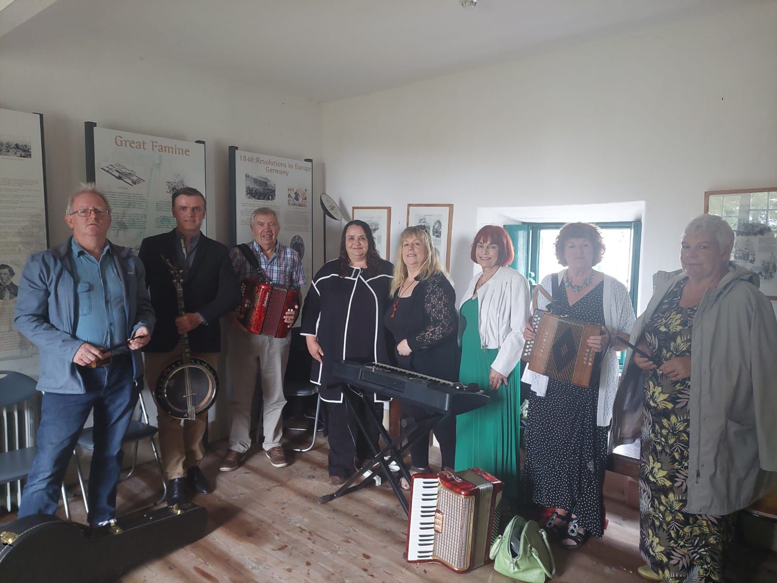 Traditional music group pictured in the Famine Warhouse on the day of the annual Walk in 2022. They entertained the Ukrainian Ambassador, Laryska Gerasko, with songs in Irish and English. Left to right Mick Roache, Willie